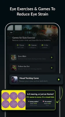 - Fun Eye Exercise Games: Zuvo Blink, Follow the Dot, Visual Tracking.