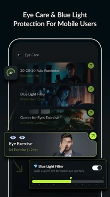- 20-20-20 Rule Reminder to reduce digital eye strain.