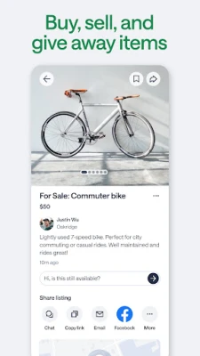 - Use the marketplace to buy and sell — fast, easy, and local