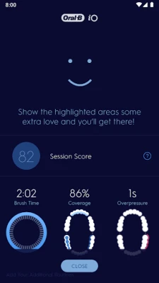 Pull up your brushing data summary after each guided brushing session and view your brush score to quickly see just how well you did.