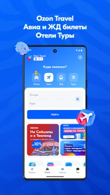 Бронируйте авиа, ж/д билеты и отели на Ozon! Это не только удобно, но и выгодно: вы можете оплатить до 99% стоимости билетов баллами Ozon. Сервисом уже пользуются более 4 миллионов человек.
