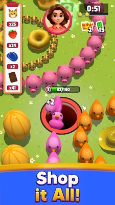 Step into Shoppin’ Drop, the most satisfying and relaxing black hole game where strolling and shopping through supermarket alley has never been this fun!