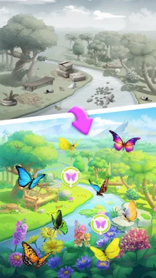 Explore all five continents worldwide, each with its unique terrain and ecosystems. Collect different butterfly chrysalises from around the globe, hatch them, and watch them dance across various scenic backdrops!