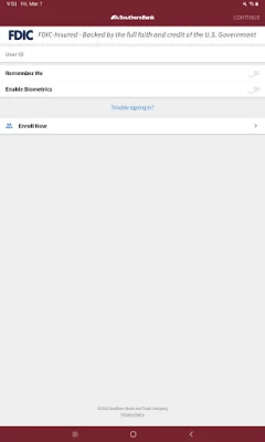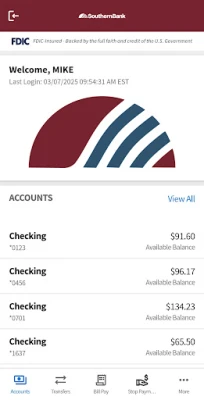 Before launching the app, make sure you have a personal online banking profile at https://www.southernbank.com/personal/mobile. This will sync all your data and keep your accounts up to date.
