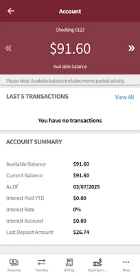 Account Controls: Deposit checks, transfer money between accounts, pay bills, receive instant real-time alerts for account activity, and view your account balance, all from the home screen.