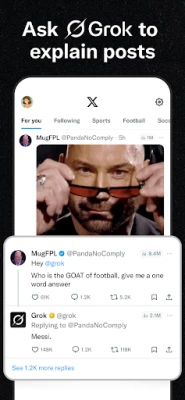 • Discover Grok, the AI assistant powered by X’s real-time data. You can ask Grok to summarize trending news, explain videos, or give you more context about posts.